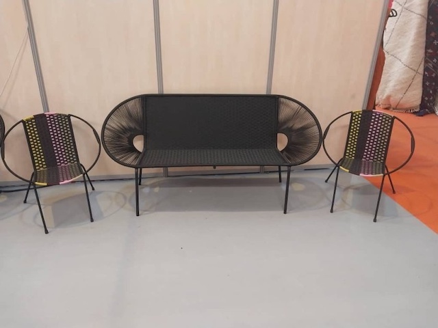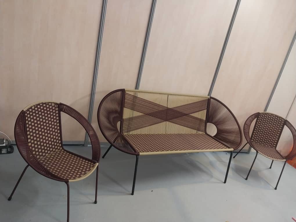 Bonkoungou Design conçoit des meubles sur mesure, des hamacs, des tapis et des sacs à main en alliant bois tressé et fils de pêche dans des créations entièrement réalisées à la main.