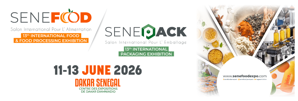 La 13e édition de l’exposition internationale d’alimentation, de la transformation alimentaire et de l’emballage (SeneFood & SenePack), se tiendra du 11 au 13 juin 2026 au centre des expositions de Diamniadio, Dakar sous le thème :« Industrie alimentaire, transformation et emballage », offrant une plateforme marketing aux acheteurs et aux vendeurs afin de mettre en œuvre des méthodes et équipements avancés pour l’industrie de la transformation et de l’emballage alimentaire.