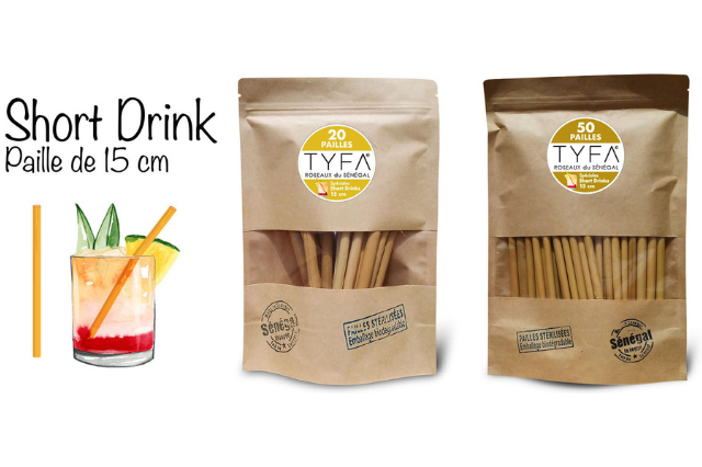 Véritable paille végétale, la paille Tyfa pousse naturellement le long des rives du fleuve Sénégal. Prenant pied au fond de l’eau, elle est naturellement hydrophobe. Parfaite pour déguster votre boisson préférée !