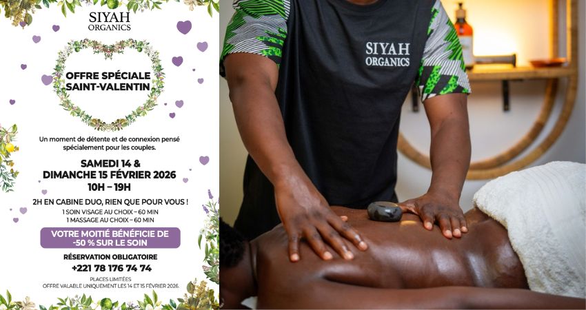 Pour rendre cette parenthèse encore plus spéciale, votre moitié bénéficie de -50 % sur le soin. Une idée de cadeau élégante et locale, idéale pour célébrer l’amour autrement au Sénégal. Réservation obligatoire – places limitées.