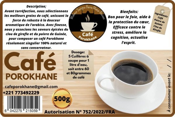Café Porokhane est une jeune entreprise spécialisée dans la production et la commercialisation de café Touba. Elle assure un goût mêlant tradition et qualité, élaboré à partir de grains soigneusement sélectionnés et d’épices locales.