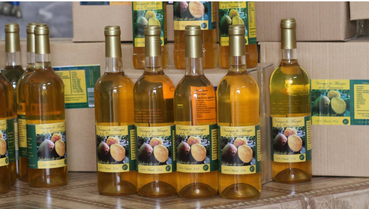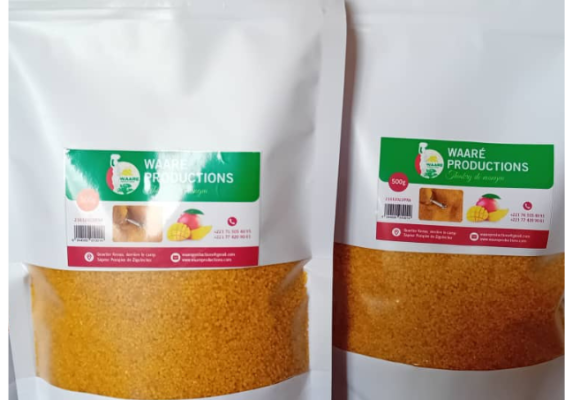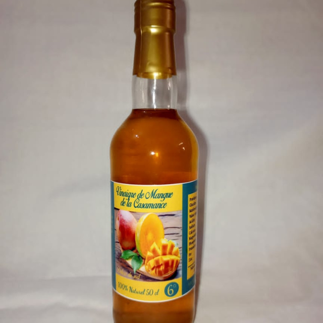 Waaré Productions produit du vinaigre de mangue 100 % naturel, conçu à partir de jus de mangue et de sucre, fabriqué de manière artisanale.